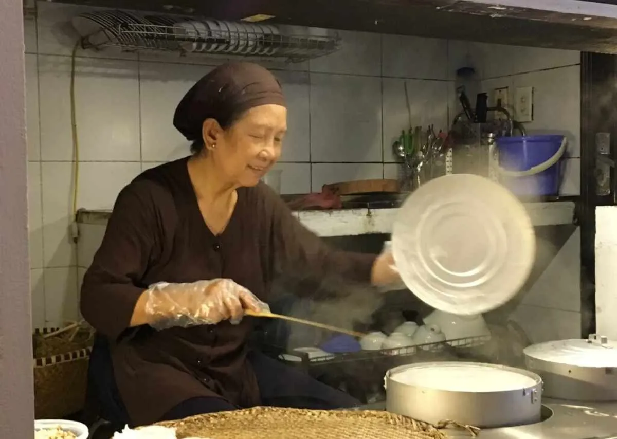 Một trong những điều làm nên bản sắc bánh cuốn Thanh Trì chính là độ mỏng. Mỏng đến mức có thể nhìn thấy ánh sáng xuyên qua lớp bánh, nhưng vẫn phải dẻo mềm, không rách, không dính.