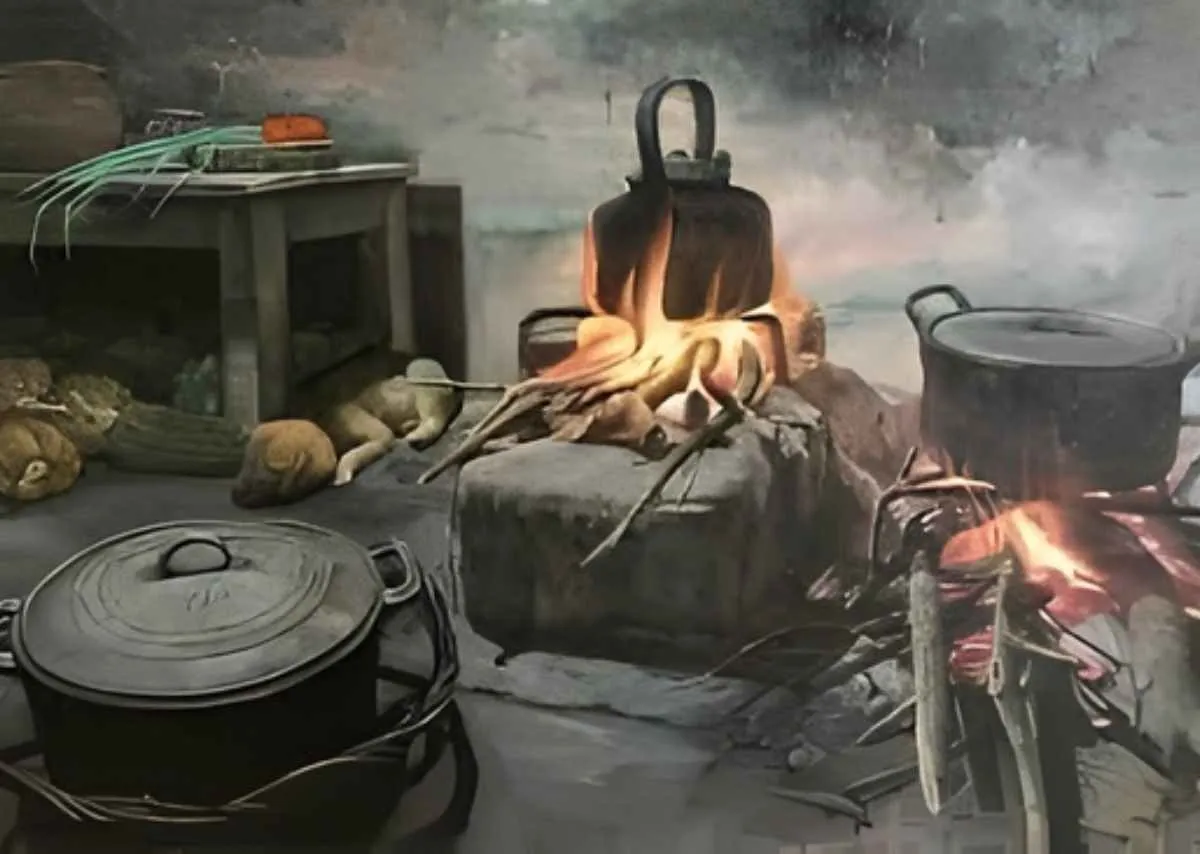 Bếp than nhỏ, chụm từ vài cành củi khô hay gốc tre cũ, là trái tim của mỗi căn nhà thời chiến. Giữa tiếng còi báo động, người mẹ vẫn nhóm lửa nấu nồi sắn luộc, khói len vào mắt cay xè mà vẫn mỉm cười.