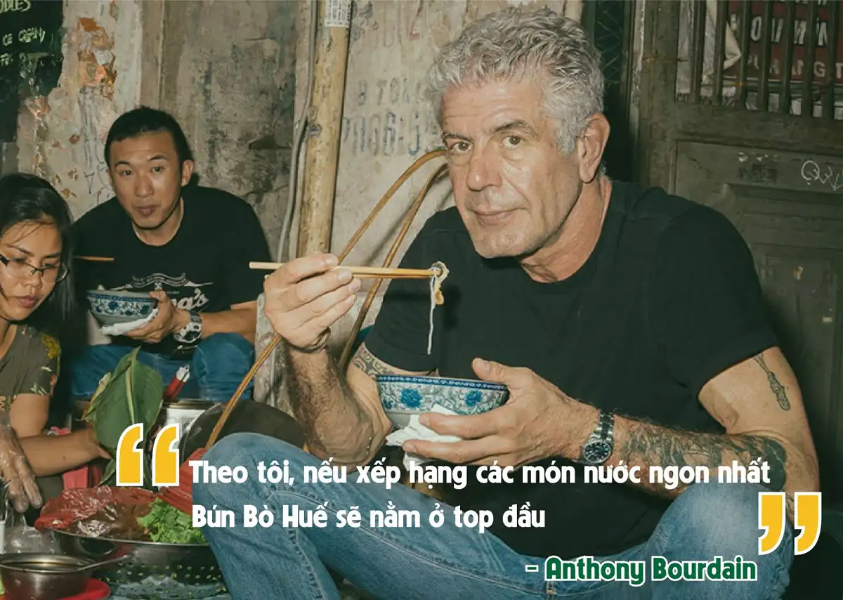 Đầu bếp lừng danh Anthony Bourdain từng thốt lên: “Bún bò Huế is the best soup in the world.” – Bún bò Huế là món súp ngon nhất thế giới.
