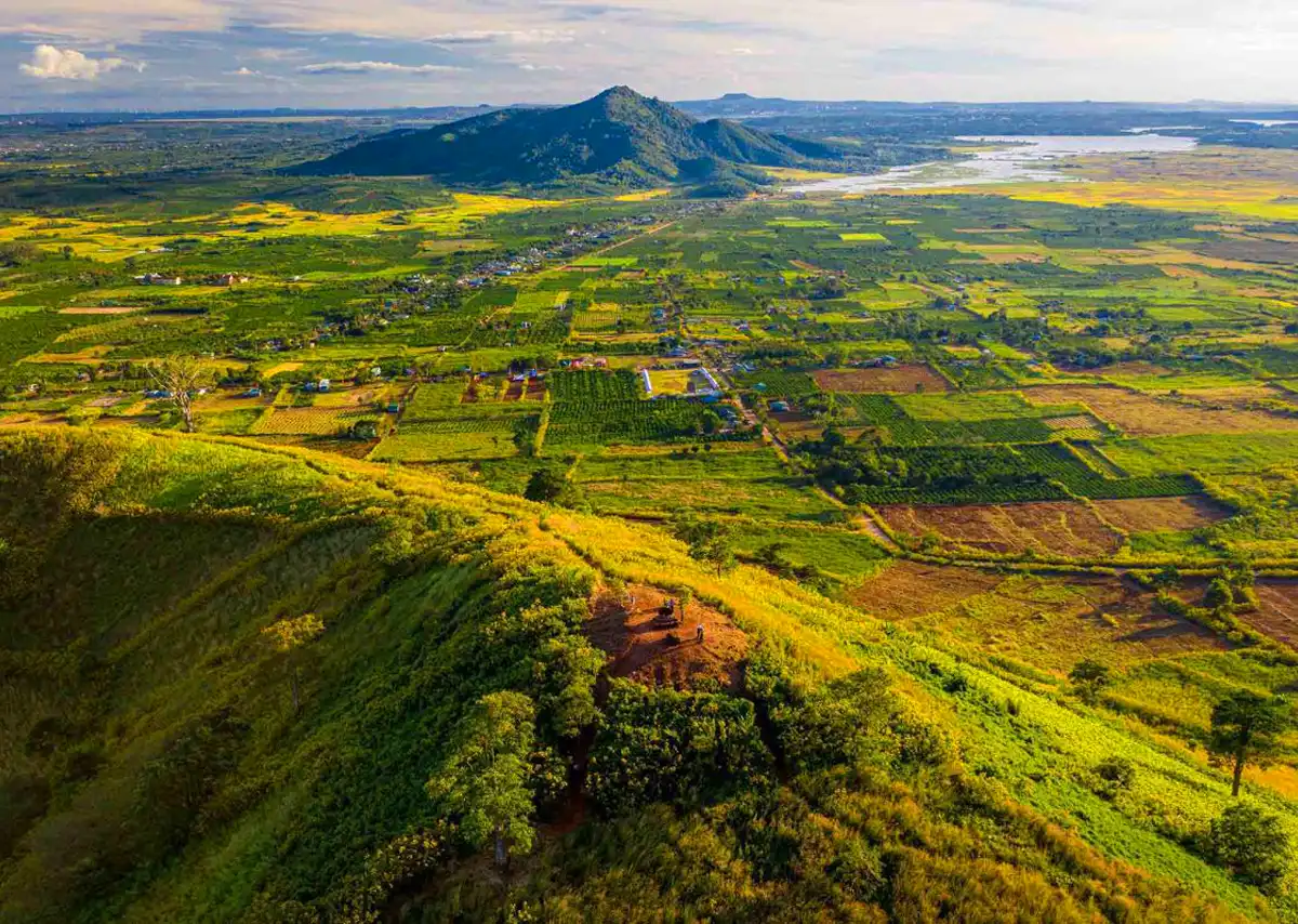 Từ xa nhìn lại, Chư Đăng Ya như một chiếc trống đồng khổng lồ, sừng sững giữa lòng đất đỏ. Đây là một trong những ngọn núi lửa cổ hiếm hoi ở Việt Nam, đã “ngủ yên” từ hàng ngàn năm trước, để lại miệng núi hình phễu tròn trịa. Theo thời gian, dung nham xưa đã hóa thành lớp đất bazan màu mỡ, nuôi dưỡng thảm xanh trải dài, biến Chư Đăng Ya thành miền đất vừa kỳ vĩ vừa trù phú.