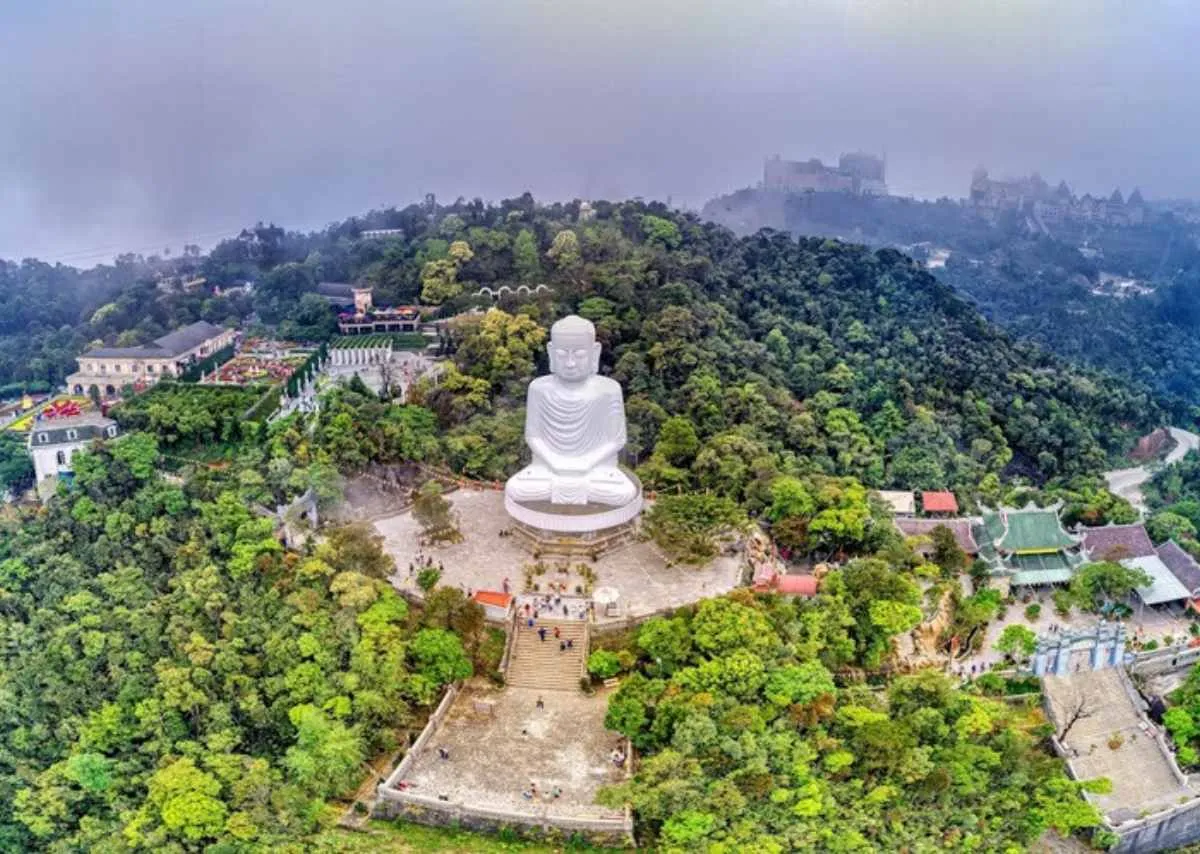 Ở Ngũ Hành Sơn và Bà Nà, dù tượng không cao bằng, nhưng mỗi công trình đều mang dấu ấn thời gian và thiên nhiên: đá vôi khắc thành hang động, mái ngói cong vút biểu thị kiến trúc Phật giáo Bắc tông, khung cảnh làm nền là rừng thông, biển cả và mây trời.