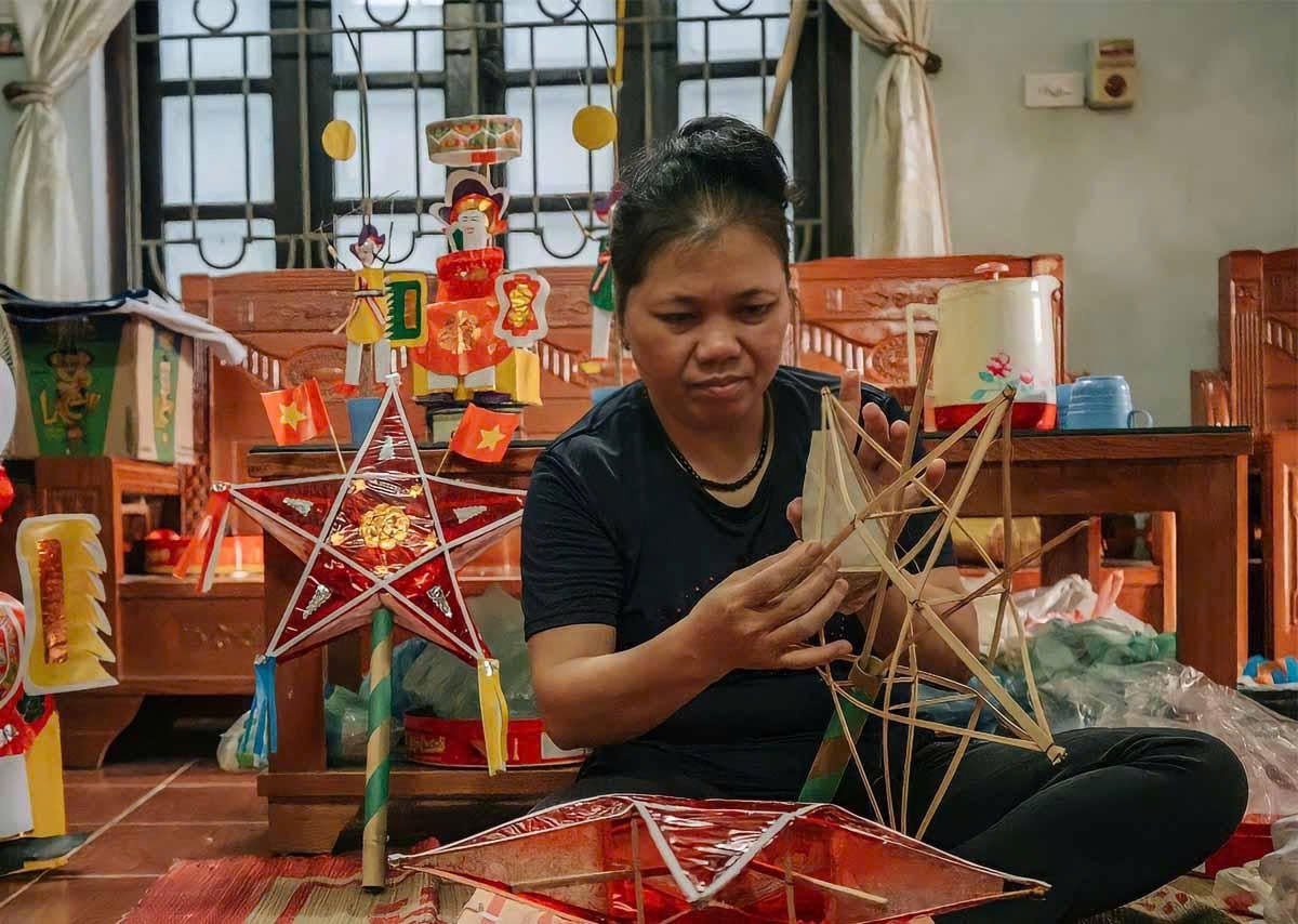 Hình ảnh nghệ nhân làm lồng đèn trung thu. Nguồn: Internet