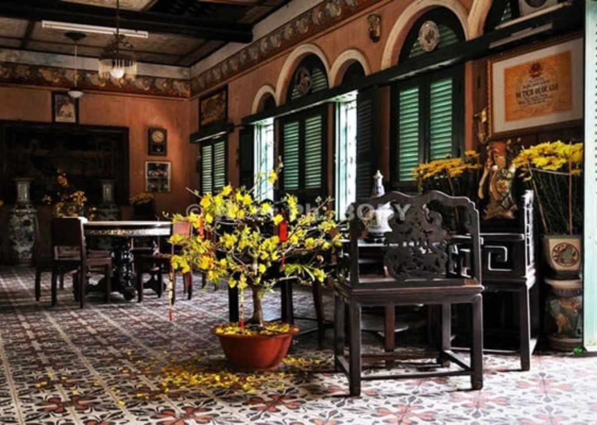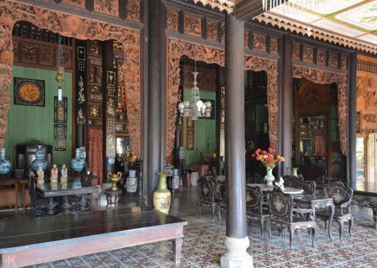 Với năm gian hai chái, vật liệu chủ yếu là gỗ quý, gạch tàu và đá Pháp, ngôi nhà không chỉ là không gian sinh hoạt, mà còn là biểu tượng của nếp sống Nam Bộ sang trọng, nghĩa tình. Từng chi tiết trong nhà – từ bộ bàn ghế gỗ cẩm lai, bức bình phong khảm xà cừ, đến bàn thờ tổ tiên đặt giữa gian giữa – đều phản ánh triết lý sống “trọng lễ nghĩa, giữ gia phong” của người miền Tây xưa.
