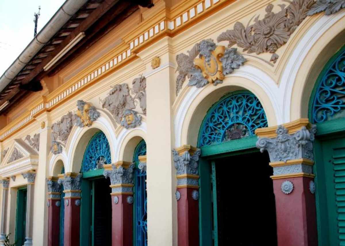 Giữa không gian của cây trái, kênh rạch và những ngôi nhà gỗ Nam Bộ, ngôi nhà nổi bật với kiến trúc pha trộn Đông – Tây hiếm thấy: phần mái ngói âm dương kiểu Việt, cửa vòm và lan can kiểu Pháp, cùng nội thất chạm khắc tinh xảo, gợi nhớ thời kỳ giao thoa văn hoá đầu thế kỷ XX.