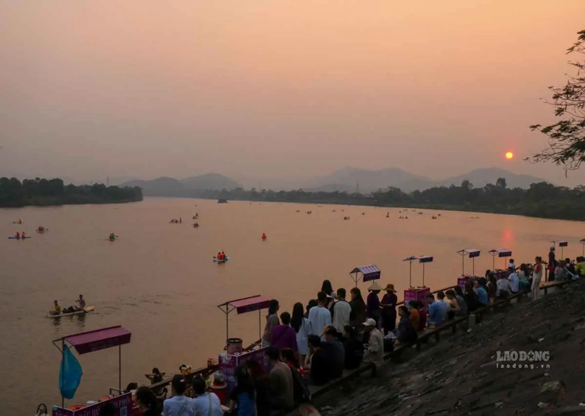 Khi chiều dần buông, sông Hương trở thành nơi hội tụ của mọi nhịp sống. Dòng người tấp nập trên cầu Tràng Tiền. Khách du lịch ngồi bên bờ, nhâm nhi ly cà phê muối thơm nồng, mắt dõi theo dòng sông đang chuyển sắc tím.