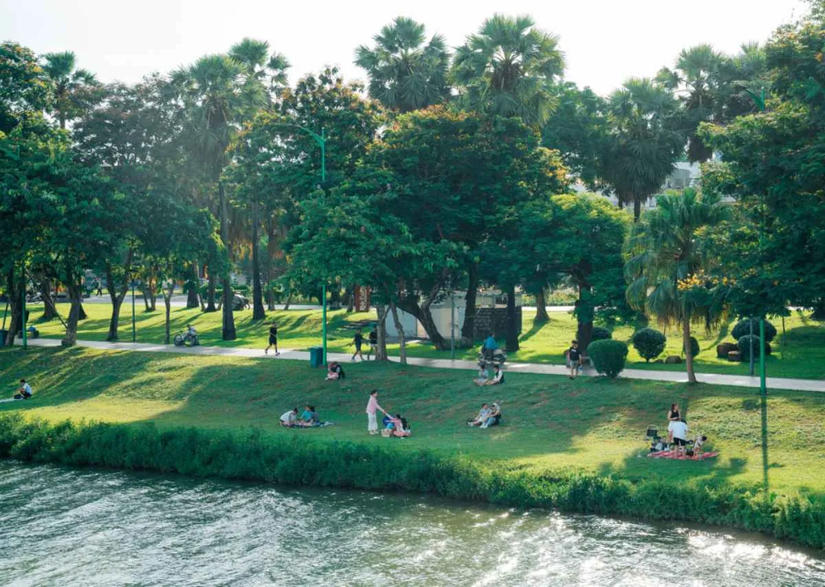 Tiếng chuông chùa ngân dài, vang vọng qua mặt sông như lời ru của thời gian. Giây phút ấy, dường như cả thành phố cũng chậm lại – không còi xe, không ồn ào.